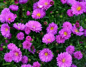 Стебли у нее прочные и прямостоячие, что делает эту астру стойкой к ветрам. Цветет обильно, полностью закрывая цветками куст. Цветки яркие, сиренево-розовые, привлекательные. Время цветения июль-сентябрь. Цветет до заморозков.