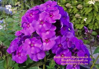 Сиреневый с фиолетовыми тенями и пурпурным колечком. Цветок колесовидный. Соцветие округло-коническое, средней плотности. Срок цветения - среднеранний.