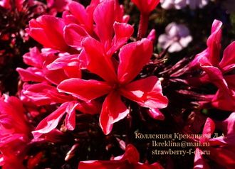 Цветки коралловые, очень необычные, звездообразные, могут иметь дополнительный ряд коротких зачаточных лепестков. Соцветия пышные. Высота растения 70см. Устойчивость к мучнистой росе повышенная. Новинка пользуется большой популярностью среди любителей и профессионалов.