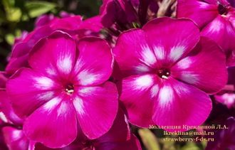 Очень яркий, эффектный. Пурпурный, с большим белым центром и пурпурно-малиновым глазком. Диаметр цветка - 4.0-5.2 см. Соцветие среднего размера, плотное. Высота куста - 90-100 см. Куст прямостоячий, стебли прочные. Цветёт в средние сроки.
