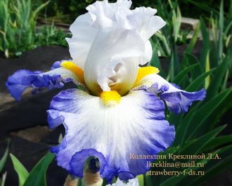 С- чисто белые. Ф- белые с широкой синей каймой, внутренний край которой размыт. Б- огромные, золотисто желтые- настоящее украшение цветка. Крупный, нарядный и очень гофрированный.