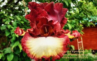 Рубиново-бордовые S, белые F с широкой каймой- пликатой в тон S. Яркий, крупный, очень красивый сорт!