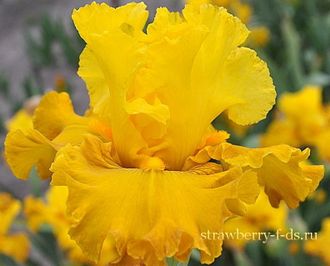 Необыкновенно яркий, солнечный, богатый, золотисто-жёлтый цветок с более насышенными фолами. Бородки насыщенно-оранжевые. Предельно гофрированный и кружевной, имеет легкий мускусный аромат. Сказочный сорт!