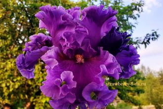 Сливово- сиреневый с более темными штрихами вокруг лимонно- золотистой Б. Крупный супер гофрированный, с прекрасной субстанцией цветок.
