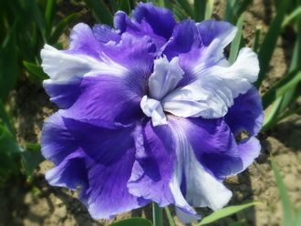 Невероятной красоты ирис, необычной формы – шестифолый, лавандово-голубой с редкими белыми фрагментами. Пестичные лепестки бледно-голубые; бородки беловатые, с жёлтым кончиком в горле, иногда отсутствуют. Очень крупный цветок в диаметре 20-24 см. Каждый цветок имеет характерную окраску от серебристо-голубого до лавандово-голубого.