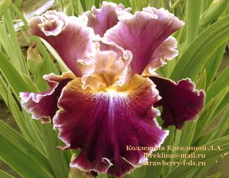 Люмината. С- красно - фиолетовые. Ф - бархатные, темно- красно - пурпурные. Б - желто- хромовые. Кайма соломенно - жёлтая. Характерное для люминаты белое пятно. Очень хорошая гофрировка. Совершенно завораживающая окраска!