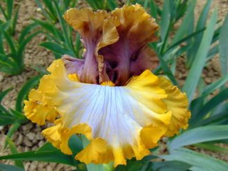 C – коричнево-ореховые с фиолетово-розовым вливанием по ц / ж. Ф – белые с лёгким светло-лавандовым жилкованием с жёлто-золотистой каймой. Б – оранжевые. Отличная форма и гофрировка.