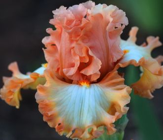 Стандарты оранжевые, с лёгким розовым оттенком по центральной жилке; пестичные лепестки кадмиево-оранжевые. Фолы янтарно-жёлтые, с кадмиево-оранжевым оттенком по краю и белой областью под оранжевыми бородками. Отличная форма и гофрировка. Имеет выраженный сладкий аромат.