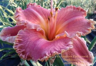 EV. ЕМ. Т. 64/16 Кораллово-малиново-розовый (цвет сочной семги) цветок плотной текстуры с обильной гофрировкой золотого канта.