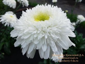 Это многолетник с коротким, наземным, укореняющимся корневищем и множеством ветвистых стеблей высотой от 50 до 100 см. Соцветие махровое, заполнено многими рядами белых язычковых цветков, а трубчатые в центре тоже имеют белый венчик, соцветия очень красивые, похожи на хризантему.