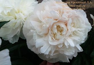 Пион травянистый, густомахровый розовидный. Бело - кремовый, при роспуске чуть розовый оттенок, изнутри отблеск слоновой кости.
