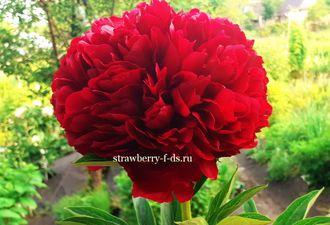 Куст мощный, высокий с толстыми и прочными стеблями. Цветы редкой красоты! Самые шаровидные цветы из всех травянистых пионов. Тёмный красно-вишнёвый, сверкающий,туго набитый пион. Весь состоит из плотных, не прилегающих друг к другу, причудливо закрученных лепестков. Форма - идеальный шар. Этот шикарный пион гордо возвышается на прочных стеблях с яркой зеленой листвой.